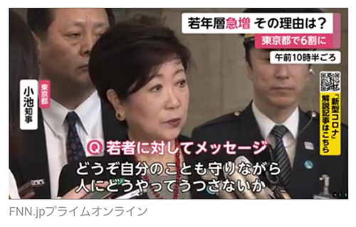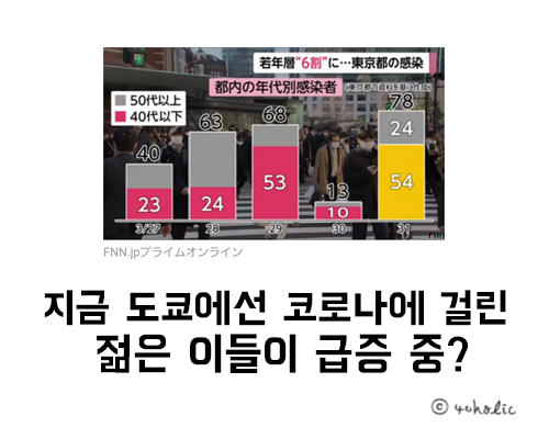 FNN뉴스에 따르면, 지금 도쿄에서는 코로나의 걸리는 젊은 세대가 많다고 한다.